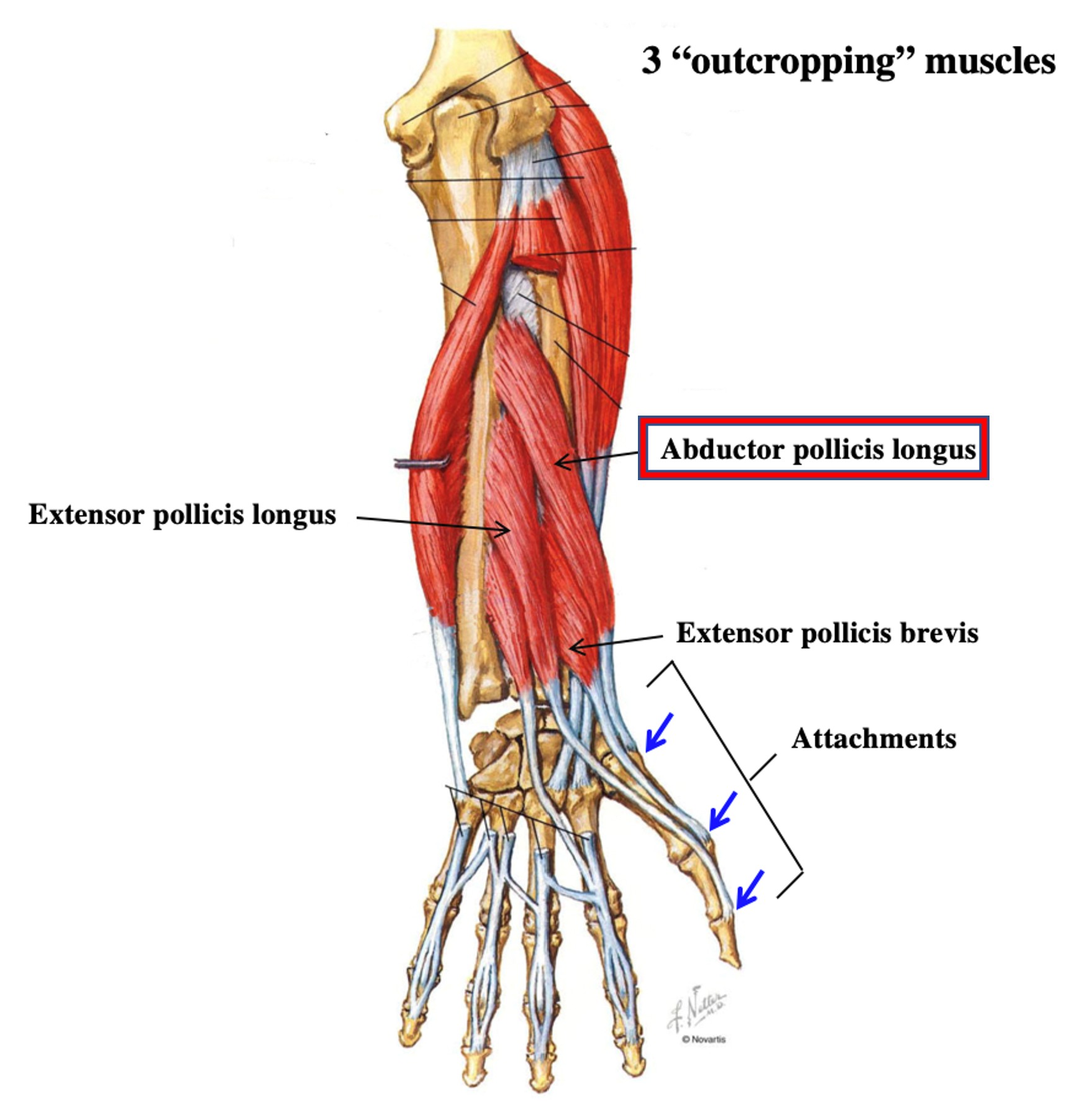 Question 2/3 - Which two tendons are involved with the lateral (radial) thumb/wrist pain in De Quervain's Tenosynovitis?
