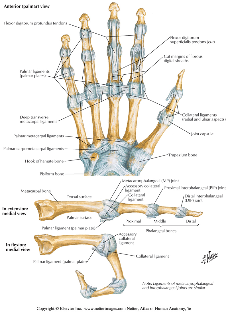 Metacarpophalangeal joints - The joints are synovial joints between metacarpal and phalanx bones.