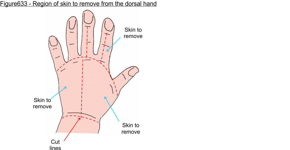 Not all fingers need to have skin removed, but remove skin completely from digit 2 (index finger).