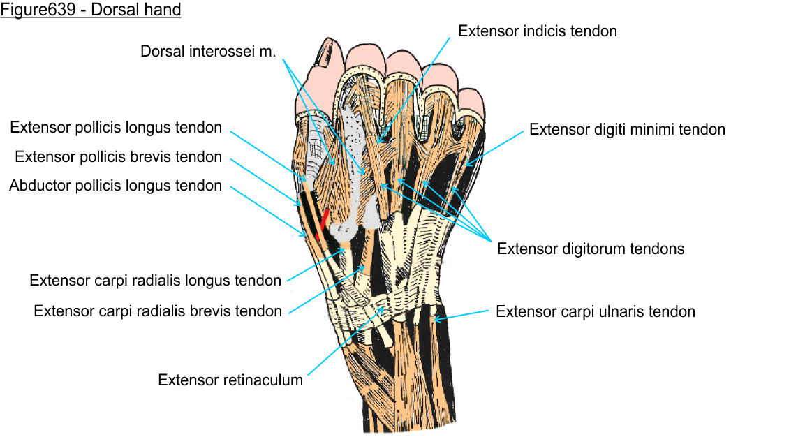 The abductor pollicis longus tendon attaches to the 1st metacarpal bone. Follow it just as far as the wrist for now.