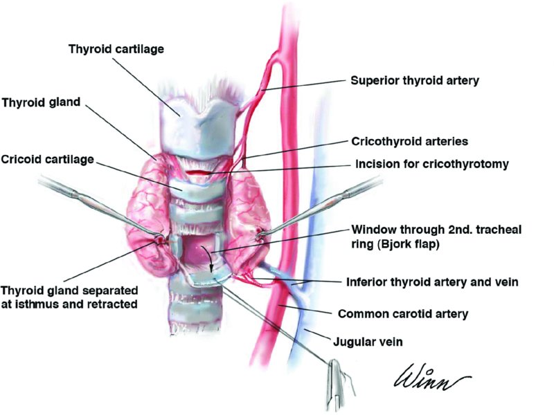 This creates a 'Bjork flap' (U-shape opening) in the anterior wall of trachea.